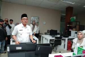 KABUPATEN BANDUNG//PropamNewsTV.id— Suasana hari pertama masuk kerja usai libur Idulfitri 1447 H dimanfaatkan Bupati Bandung, Dadang Supriatna, untuk langsung bergerak. Didampingi Wakil Bupati Ali Syakieb dan Sekretaris Daerah Cakra Amiyana, ia melakukan inspeksi mendadak (sidak) ke Badan Pendapatan Daerah (Bapenda) dan Badan Keuangan dan Aset Daerah (BKAD), Rabu (25/3/2026).