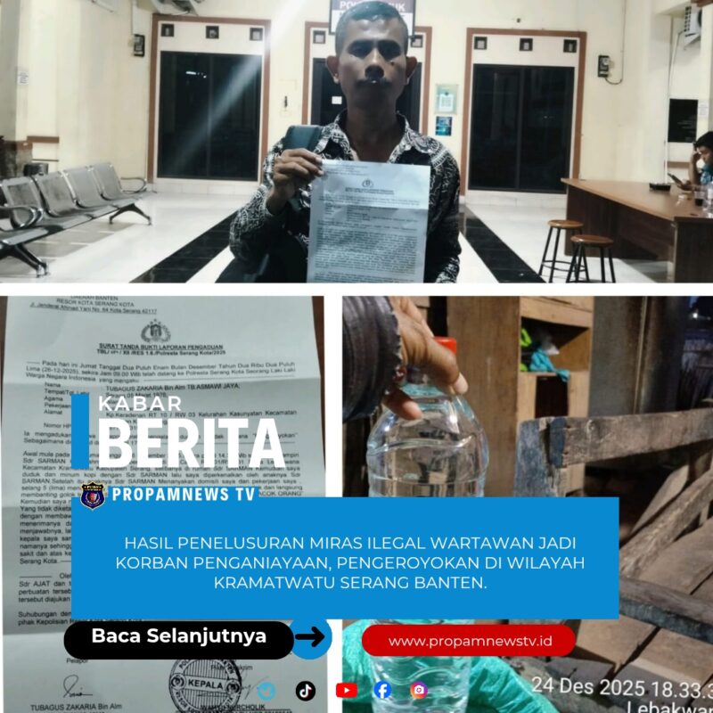SERANG //propamnewstv.id— Upaya penelusuran dugaan peredaran minuman keras (miras) ilegal di wilayah Kramatwatu, Kabupaten Serang, berujung tindak kekerasan. Seorang wartawan media online Bungas Banten berinisial (JK ) menjadi korban pengeroyokan brutal oleh sekelompok orang saat menjalankan tugas jurnalistiknya, Jumat (26/12/2025).