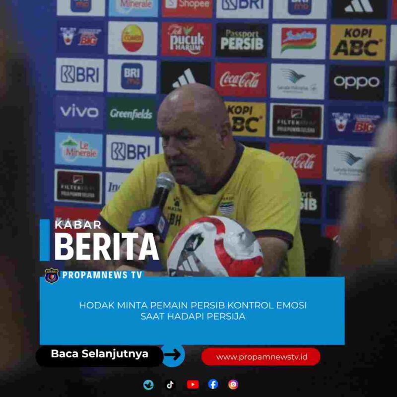 BANDUNG, // PropamNewstv.id – Pelatih PERSIB Bandung, Bojan Hodak, menyampaikan pesan khusus kepada para pemainnya jelang laga kontra Persija Jakarta pada pekan ke-17 Super League 2025/26. Pertandingan tersebut akan digelar di Stadion Gelora Bandung Lautan Api (GBLA), Minggu (11/1/2026) pukul 15.30 WIB. Hodak menekankan pentingnya para pemain untuk mampu mengontrol emosi.