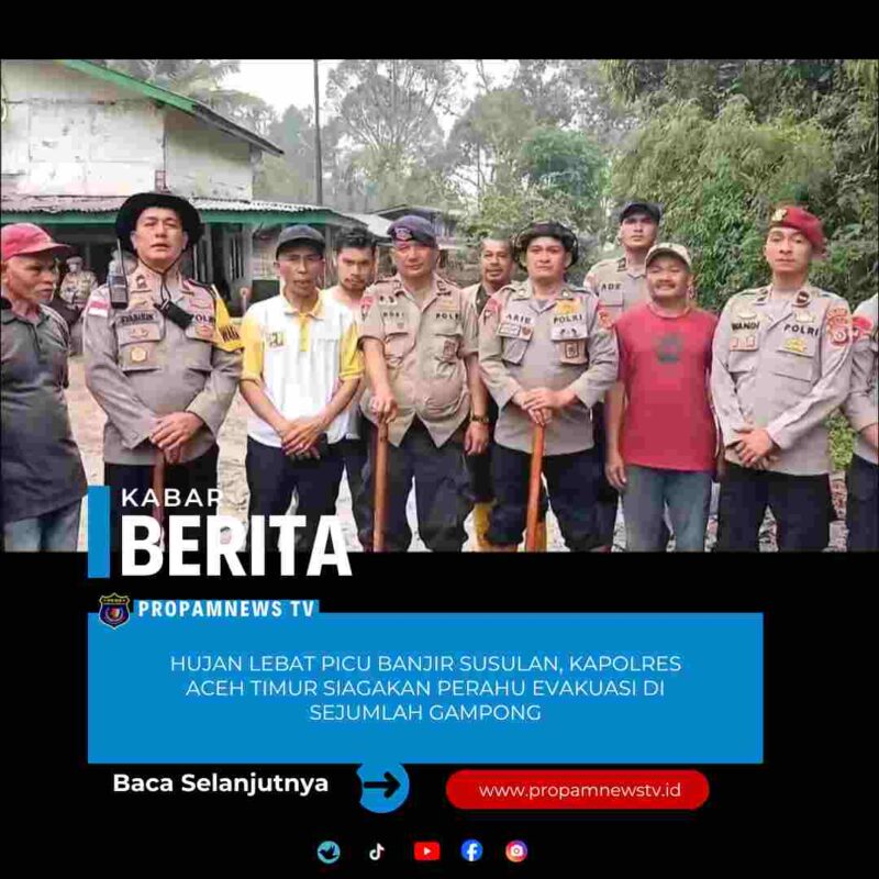 Aceh Timur, // PropamNewstv.id – Sejumlah wilayah di Kabupaten Aceh Timur kembali diguyur hujan. Akibatnya, sejumlah gampong terendam air. Kejadian ini menjadi perhatian serius Kapolres Aceh Timur, AKBP Irwan Kurniadi, S.I.K. dengan memantau langsung wilayah terdampak, salahsatunya di Gampong Alue Ie Mirah, Kecamatan Indra Makmur. Kamis, (08/01/2026).