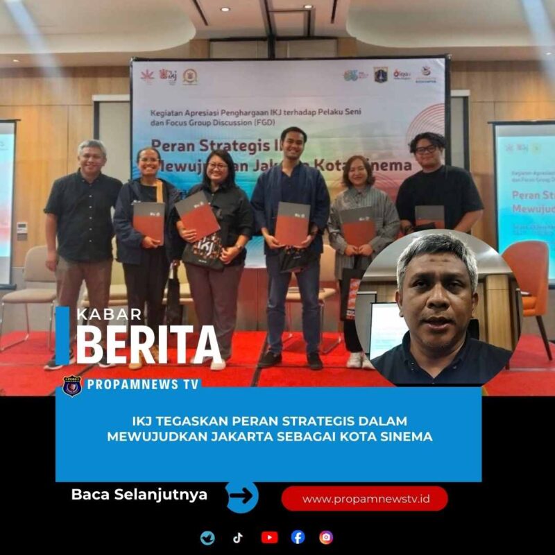 Jakarta // propamnewstv.id — Institut Kesenian Jakarta (IKJ) menggelar kegiatan Apresiasi Penghargaan IKJ terhadap Pelaku Seni yang dirangkaikan dengan Focus Group Discussion (FGD) bertema “Peran Strategis IKJ Mewujudkan Jakarta Kota Sinema dan IKJ sebagai Laboratorium Produksi Film di Indonesia”.