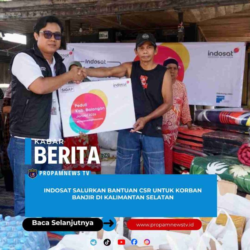 Banjarmasin // PropamNewstv.id – Indosat Ooredoo Hutchison (Indosat atau IOH) menyalurkan bantuan kemanusiaan kepada masyarakat terdampak banjir bandang di Provinsi Kalimantan Selatan sebagai bagian dari komitmen perusahaan dalam mendukung upaya tanggap darurat dan pemulihan pascabencana melalui program Corporate Social Responsibility (CSR). Dukungan ini merupakan bagian dari inisiatif Indosat SIGAP (Siap Tanggap Keadaan Darurat) yang berada di bawah payung program Corporate Social Responsibility (CSR) pilar filantropi.