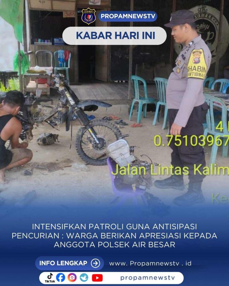 AIR BESAR, LANDAK//propamnewstv.id – Untuk mencegah terjadinya aksi pencurian serta menjaga situasi kamtibmas tetap aman dan kondusif, personel Polsek Air Besar melaksanakan patroli siang di wilayah Desa Serimbu Kecamatan Air Besar Kabupaten Landak. Kamis (4/12/2025).