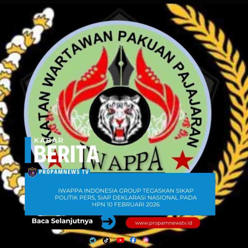 Kabupaten Bandung, // PropamNewstv.id – Ikatan Wartawan Pakuan Pajajaran Indonesia yang tergabung dalam IWAPPA INDONESIA GROUP menegaskan sikap politik pers sebagai kekuatan moral bangsa dengan menyatakan kesiapan melaksanakan Deklarasi Nasional IWAPPA INDONESIA GROUP pada momentum Hari Pers Nasional (HPN) 10 Februari 2026.