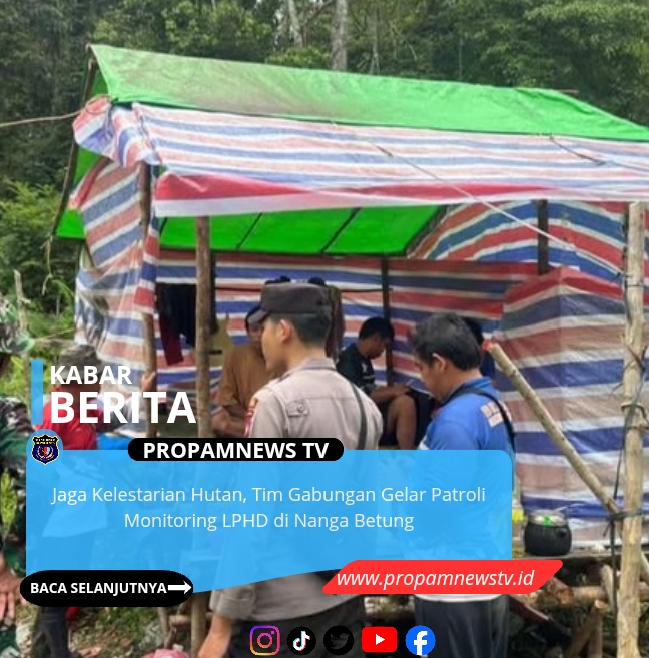 KAPUAS HULU, // PropamNewstv.id — Tim gabungan yang terdiri dari Polsek Boyan Tanjung, Koramil 1206-08, Kesatuan Pengelolaan Hutan (KPH) Kapuas Hulu Selatan, serta Lembaga Pengelola Hutan Desa (LPHD) Pundjung Batara menggelar patroli monitoring kawasan hutan di wilayah Nanga Betung, Kabupaten Kapuas Hulu, Kalimantan Barat.