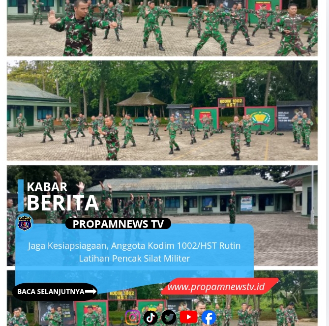 BARABAI, // PropamNewstv.id – Seluruh anggota Kodim 1002/Hulu Sungai Tengah (HST) melaksanakan latihan Pencak Silat Militer (PSM) di lapangan apel Makodim 1002/HST usai mengikuti Upacara Bendera 17-an, Senin (18/02/2026).