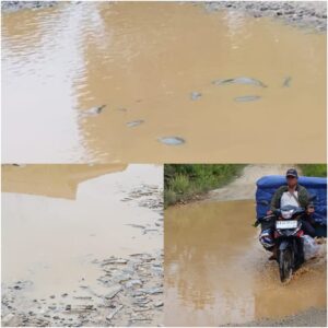 Lubang-lubang besar yang tergenang air tidak hanya membahayakan pengendara, tetapi juga menghambat aktivitas ekonomi masyarakat.