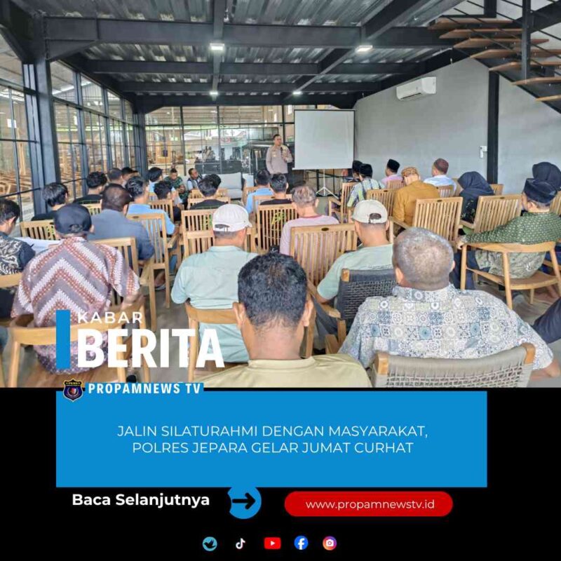Jepara – Polres Jepara //propamnewstv.id | Kepolisian Resor (Polres) Jepara, Polda Jawa Tengah, terus menunjukkan komitmennya untuk hadir di tengah masyarakat melalui program Jumat Curhat, yang dilaksanakan secara serentak oleh jajaran Polsek di wilayah hukum Polres Jepara.