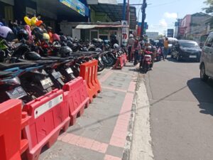 Upaya lainnya dilakukan dengan pemasangan water barrier di trotoar area pertokoan Ria Busana. Langkah ini bertujuan mencegah kendaraan roda dua parkir di atas trotoar, sehingga fungsi trotoar tetap optimal bagi pejalan kaki.