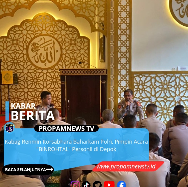DEPOK, // PropamNewstv.id – Mengisi bulan suci Ramadan 1447 H dengan kegiatan positif, Korsabhara Baharkam Polri menyelenggarakan Pembinaan Rohani dan Mental (Binrohtal) bagi personel yang beragama Islam. Kegiatan bertajuk “Hikmah Puasa di Bulan Suci Ramadhan 1447 H” ini dilaksanakan di Masjid Al Ikhlas, Depok, Kamis (26/02/2026).