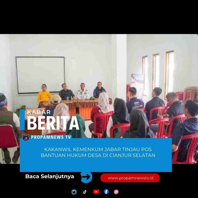 Cianjur, // PropamNewstv.id — Kantor Wilayah Kementerian Hukum dan HAM Jawa Barat (Kemenkum Jabar) terus memperkuat akses keadilan hingga tingkat desa. Kepala Kantor Wilayah Kemenkum Jabar, Asep Sutandar, turun langsung ke wilayah pelosok Cianjur Selatan, tepatnya di Desa Cibuluh, Kecamatan Cidaun, pada Rabu (14/1/2026).