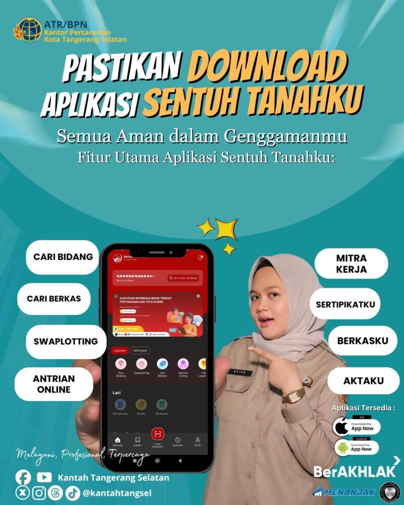 “Kami ingin mengubah stigma bahwa mengurus tanah itu rumit. Dengan Sentuh Tanahku, kepastian waktu dan transparansi proses ada di genggaman masyarakat. Jadi, sebelum datang ke kantor, pastikan sudah daftar antrian online, dan jika ingin tahu berkas sudah sampai meja mana, cukup cek di aplikasi,” ujarnya.