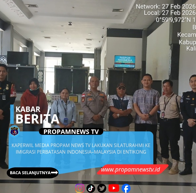 ENTIKONG, // PropamNewstv.id  — Kepala Perwakilan Wilayah (Kaperwil) Media Propam News TV melaksanakan kegiatan silaturahmi sekaligus kunjungan kerja ke Kantor Pos Lintas Batas Negara (PLBN) Entikong yang berada di kawasan perbatasan Indonesia–Malaysia, Kecamatan Entikong, Kabupaten Sanggau, Provinsi Kalimantan Barat.