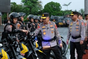 Dalam kegiatan tersebut dilakukan pengecekan terhadap kendaraan operasional baik roda dua, roda empat maupun kendaraan taktis yang akan digunakan selama pelaksanaan operasi, guna memastikan seluruh sarana dan prasarana dalam kondisi siap digunakan untuk mendukung pengamanan arus mudik dan arus balik Lebaran.