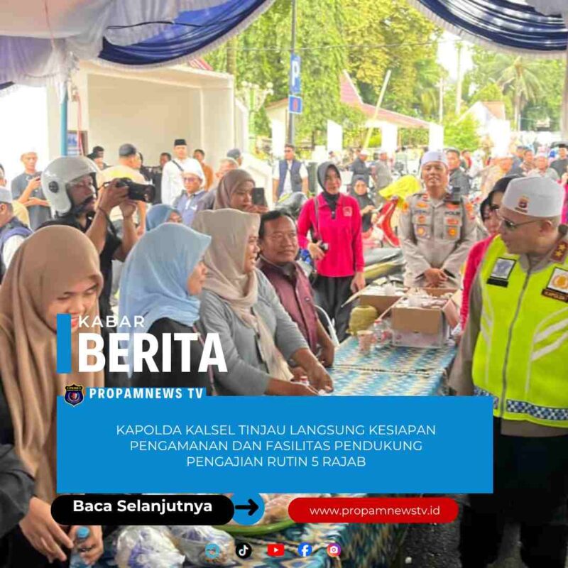 KALSEL //propamnewstv.id – Guna memastikan terselenggaranya kegiatan keagamaan dengan aman, nyaman, dan tertib, Kapolda Kalimantan Selatan, Irjen Pol Rosyanto Yudha Hermawan, S.I.K., S.H., M.H. secara langsung melakukan pengecekan terhadap sejumlah pos pengamanan, pos pelayanan, dapur umum, dan mobil unit water treatment di lokasi Pengajian Rutin 5 Rajab, Sabtu (27/12/2025) pagi.