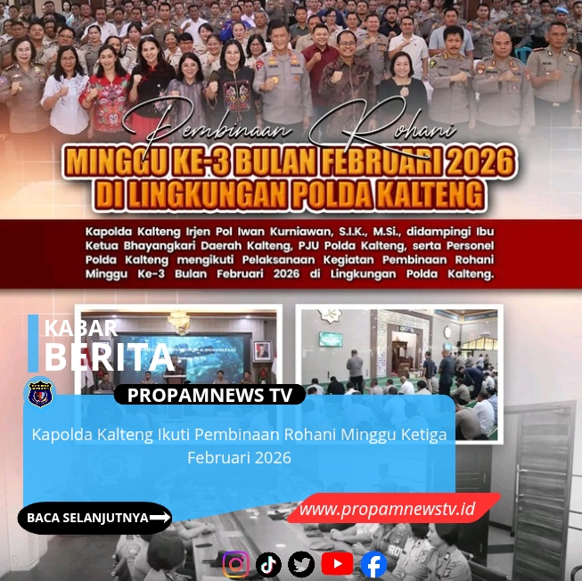 KALTENG, // PropamNewstv.id — Kapolda Kalimantan Tengah Iwan Kurniawan mengikuti kegiatan pembinaan rohani minggu ketiga Februari 2026 yang dilaksanakan di lingkungan Polda Kalimantan Tengah.