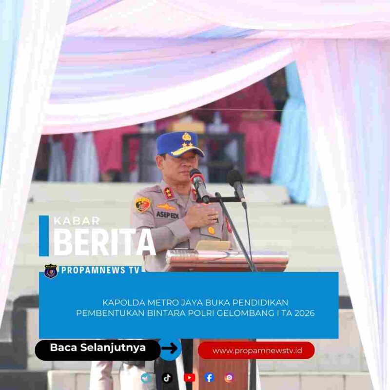Jakarta // PropamNewstv.id – Kapolda Metro Jaya Irjen Pol. Asep Edi Suheri membuka secara resmi Pendidikan Pembentukan Bintara Polri Gelombang I Tahun Anggaran 2026 yang digelar pada Selasa (6/1/2026). Pada kesempatan tersebut, Kapolda Metro Jaya sekaligus membacakan amanat Kalemdiklat Polri kepada seluruh peserta upacara.