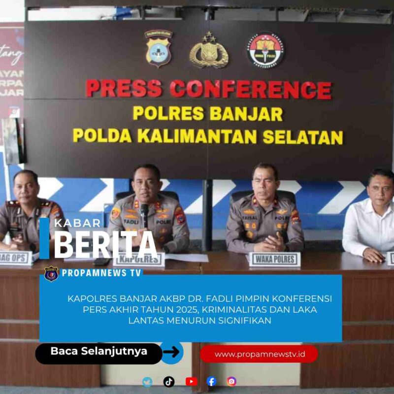 Kabupaten Banjar – Polres Banjar menggelar Konferensi Pers Akhir Tahun 2025 yang dipimpin langsung oleh AKBP Dr. Fadli. Kegiatan ini dilaksanakan sebagai bentuk transparansi dan pertanggungjawaban kinerja Polri kepada masyarakat atas pelaksanaan tugas selama tahun 2025.