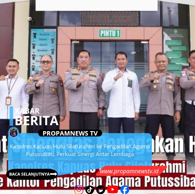 KAPUAS HULU, // PropamNewstv.id — Kapolres Kapuas Hulu melaksanakan kunjungan silaturahmi ke Kantor Pengadilan Agama Putussibau, Kabupaten Kapuas Hulu, Kalimantan Barat, sebagai upaya mempererat sinergi dan kerja sama antar lembaga penegak hukum, Senin (18/2/2026).