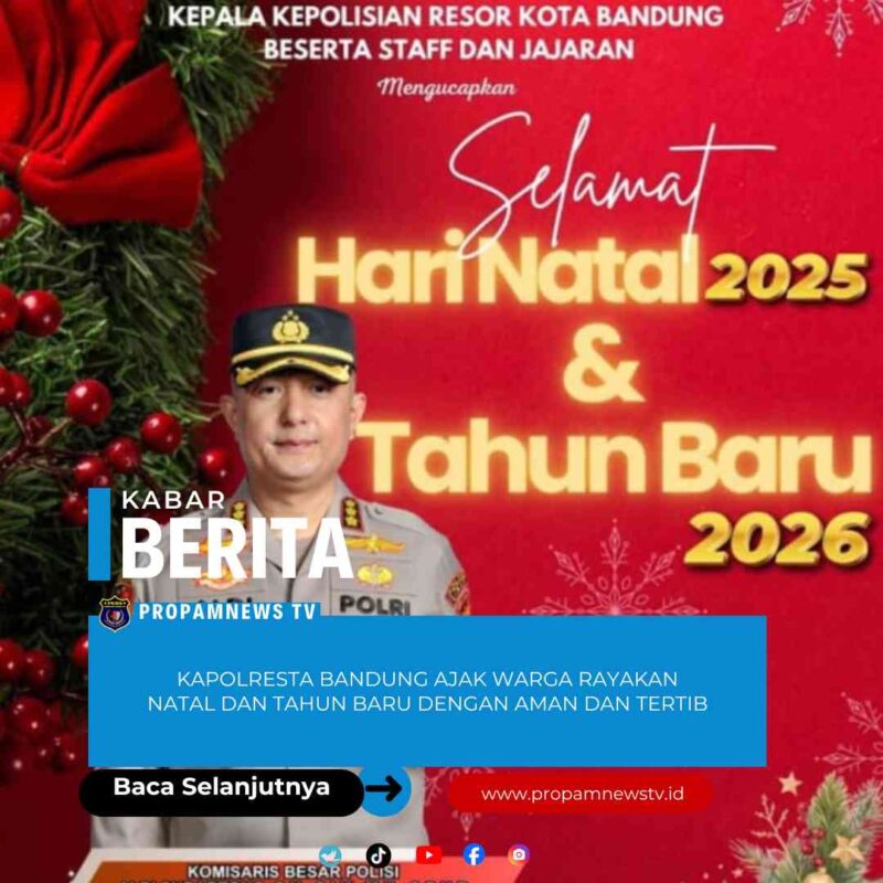 Kapolresta Bandung menyampaikan ucapan Selamat Natal dan Tahun Baru kepada seluruh masyarakat Bandung, seraya mengingatkan pentingnya menjaga suasana kondusif di momen akhir tahun.