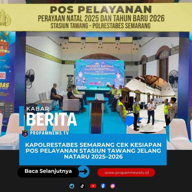 Semarang // propamnewstvid — Kapolrestabes Semarang Kombes Pol. M. Syahduddi, S.I.K., M.Si., melaksanakan pengecekan kesiapan Pos Pelayanan (Posyan) di Stasiun Tawang Semarang dalam rangka pengamanan perayaan Natal 2025 dan Tahun Baru 2026, Jumat (19/12/2025) malam.