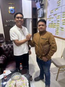 KALSEL //propamnewstv.id/ – Kapolsek Banjarmasin Tengah, AKP Haris Wicaksono, S.T.K., S.I.K., M.Sc., menyambut kunjungan silaturahmi santai dari Apri Wilianto di ruang kerjanya. Pertemuan akrab ini berlangsung pada Kamis (12/3) selama dua jam penuh, mencerminkan pendekatan Polri yang humanis dalam membangun kedekatan dengan warga Banjarmasin Tengah. Dalam obrolan ringan sambil menikmati minuman, Kapolsek Haris dan Apri Wilianto membahas isu keamanan lokal serta peluang kerjasama masyarakat.