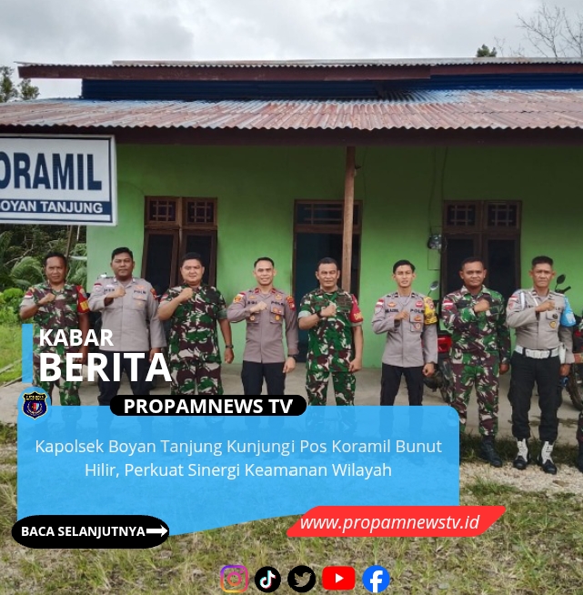 BOYAN TANJUNG, // PropamNewstv.id — Kapolsek Boyan Tanjung, IPDA Egidius Egi, mengawali masa tugasnya dengan melakukan kunjungan silaturahmi ke Pos Koramil 1206-08/Bunut Hilir pada Jumat, 20 Februari 2026. Kunjungan tersebut dilakukan dua hari setelah kegiatan kenal pamit dengan Forum Koordinasi Pimpinan Kecamatan (Forkopincam) dan masyarakat setempat.