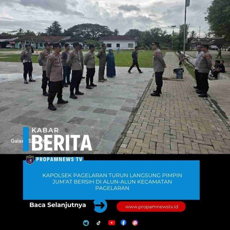 Pandeglang, // PropamNewstv.id – Sebagai bentuk dukungan terhadap program Jum’at Bersih, jajaran Muspika Kecamatan Pagelaran melaksanakan kegiatan gotong royong kebersihan di Alun-Alun Kecamatan Pagelaran, Kabupaten Pandeglang, Provinsi Banten, pada Jumat pagi, Jumat (6/2/2026).