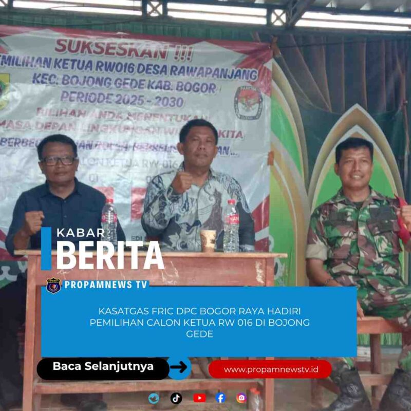Bogor, 25 Desember 2025 //propamnewstv.id – Kasatgas FRIC DPC Bogor Raya, Dedi Supiandi, menghadiri undangan pemilihan calon Ketua RW 016 Kampung Kelapa, Desa Rawa Panjang, Kecamatan Bojong Gede, Kabupaten Bogor. Kehadiran tersebut merupakan bentuk partisipasi aktif sebagai warga negara dalam proses demokrasi di tingkat lingkungan.