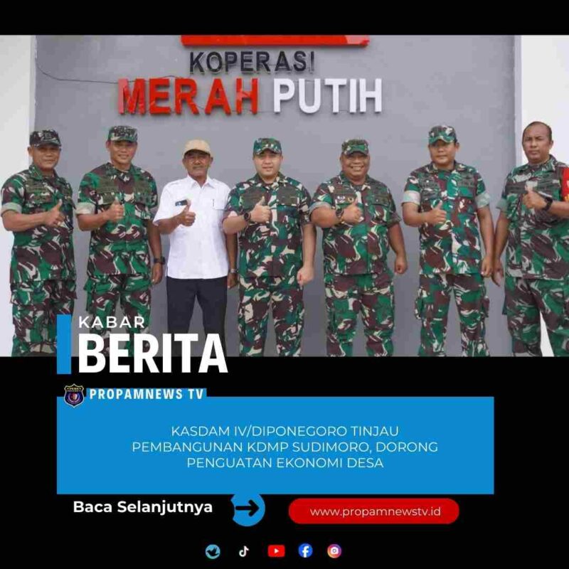 Boyolali, // PropamNewstv.id — Komitmen TNI Angkatan Darat dalam mendukung pemberdayaan ekonomi masyarakat desa kembali ditunjukkan melalui kunjungan kerja Kasdam IV/Diponegoro Brigjen TNI M. Andhy Kusuma, S.Sos., M.M., M.Han., CFrA di lokasi pembangunan Koperasi Desa Merah Putih (KDMP) Desa Sudimoro, Kecamatan Teras, Kabupaten Boyolali, Rabu (14/01/2026).
