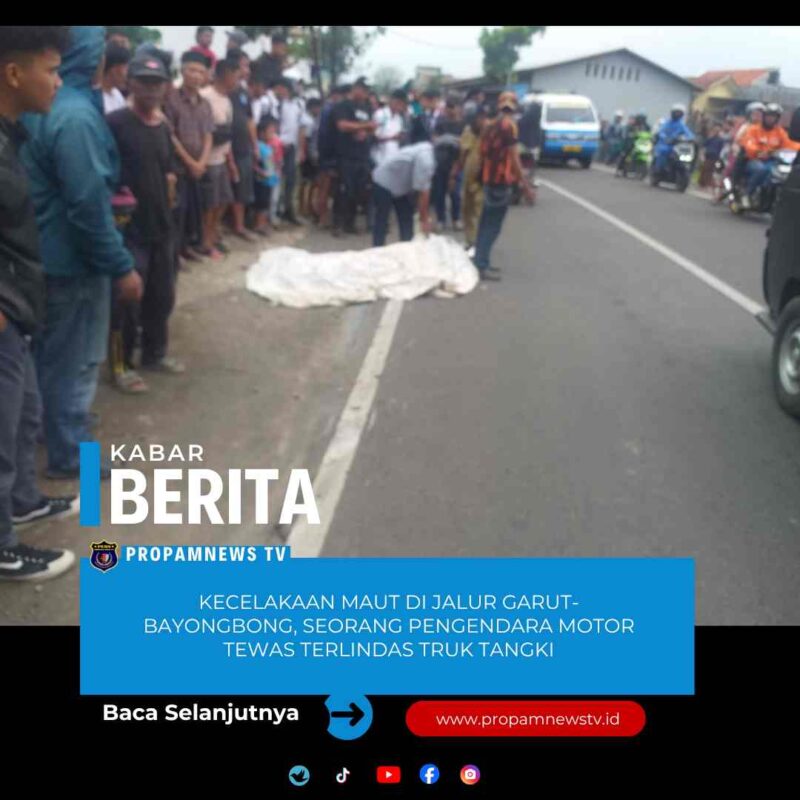 GARUT //propamnewstv.id – Kecelakaan lalu lintas yang merenggut korban jiwa terjadi di Jalan Raya Garut-Bayongbong, tepatnya di depan SMKN 9 Garut, Desa Karyajaya, Kecamatan Bayongbong, pada Senin (9/2). Seorang pengendara sepeda motor Honda Beat dilaporkan meninggal dunia di lokasi kejadian setelah terlibat insiden dengan truk tangki milik Pertamina.