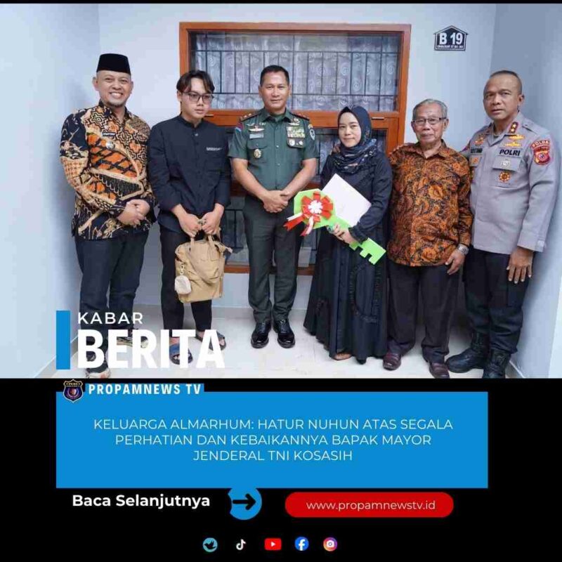 Bandung, // PropamNewstv.id – Hujan rintik-rintik di Kota Bandung dan sekitarnya, Panglima Kodam III/Siliwangi, Mayor Jenderal TNI Kosasih, di dampinggi Kapoksahli Kodam III/Siliwangi, Brigjen TNI Robertson Ismail, S I.P., M.M., M.Si., dan rombongan menuju tempat penyerahan 2 (dua) unit rumah kepada keluarga almarhum Ipda Anumerta Hendra Kurniawan dan Aiptu Anumerta Muhammad Jerry Sonconery, di Gg. Bpk. H. Yoyo, Kp. Cihanjuang, Parompong Kab. Bandung Barat, Kamis (29/01/2026).