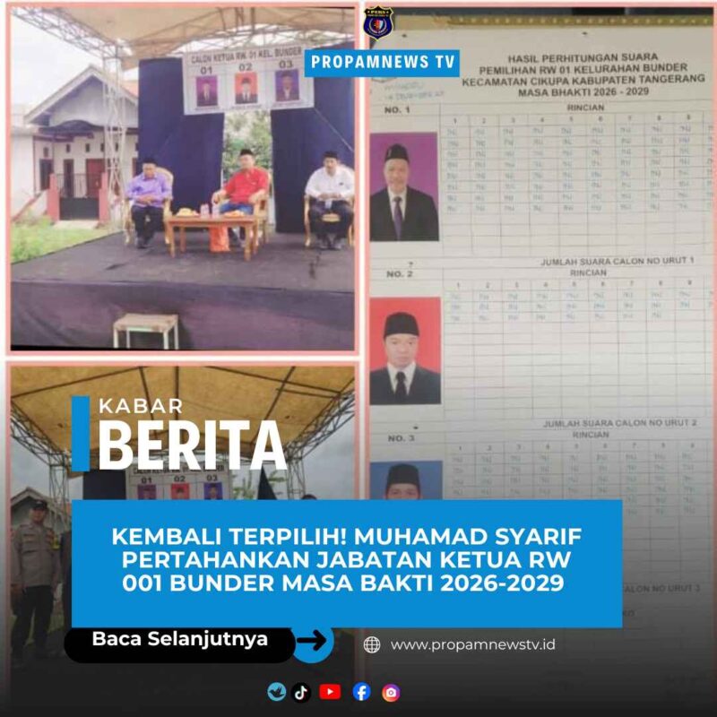 KAB TANGERANG // propamnewstv.id – Pemilihan Ketua Rukun Warga (RW) 001 Kelurahan Bunder, Kecamatan Cikupa, Kabupaten Tangerang, untuk masa bakti 2026-2029, telah diselenggarakan dengan sukses pada Minggu, (14/12/2025).