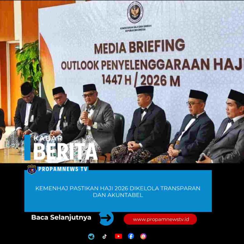 Jakarta, // PropamNewstv.id – Kementerian Haji dan Umrah (Kemenhaj) memastikan penyelenggaraan ibadah haji 1447 H/2026 M bakal dikelola secara transparan dan akuntabel. Untuk memperkuat pengawasan, Kemenhaj menggandeng lembaga penegak hukum seperti Komisi Pemberantasan Korupsi (KPK) dan Kejaksaan.
