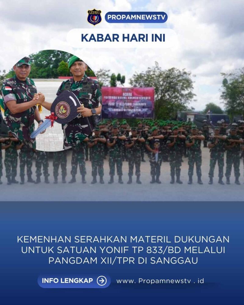SANGGAU // propamnewstv.id – Kementerian Pertahanan Republik Indonesia menyerahkan material dukungan untuk Yonif TP 833 melalui Pangdam XII/Tanjungpura pada kegiatan yang berlangsung di Sabang Merah, Kelurahan Bunut, Kecamatan Kapuas, Kabupaten Sanggau. Senin, (1/12/2025).