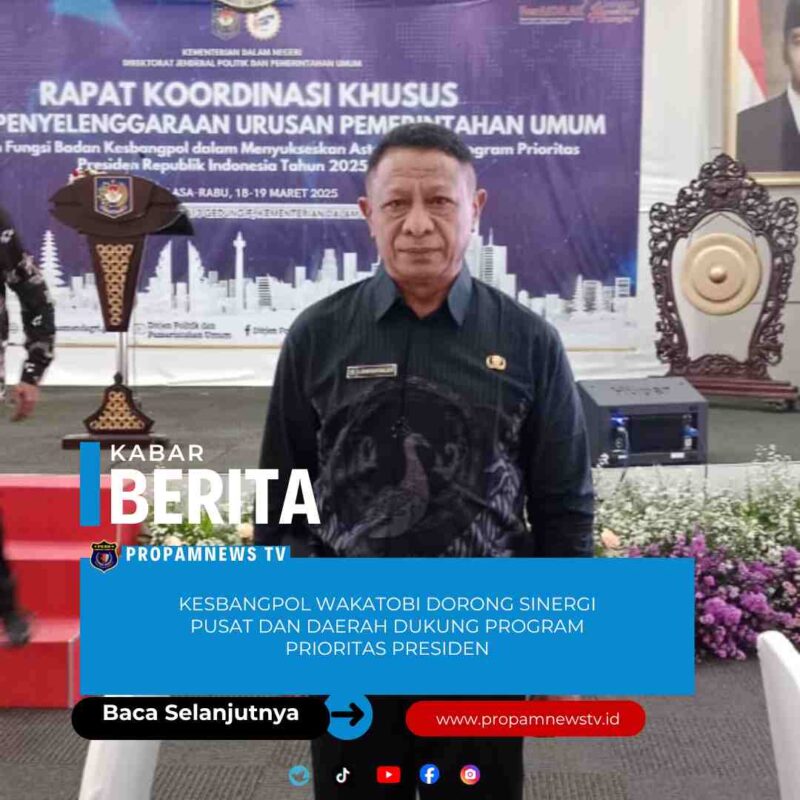 Jakarta //propamnewstv.id — Kepala Badan Kesatuan Bangsa dan Politik (Kesbangpol) Kabupaten Wakatobi, Adam Bahtiar, menghadiri Rapat Koordinasi Nasional (Rakornas) bertema “Sinergi Pelaksanaan Program dan Kegiatan Urusan Pemerintahan Umum di Daerah Guna Mendukung Pelaksanaan Program Prioritas Presiden dan Asta Cita” yang digelar di Ballroom Hotel Pullman Central Park, Jakarta, Jumat (16/1/2026).