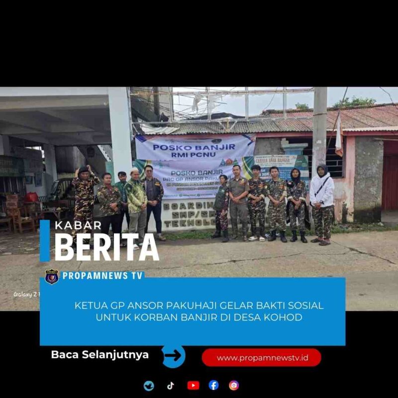 Kabupaten Tangerang, // PropamNewstv.id — Ketua Gerakan Pemuda (GP) Ansor Kecamatan Pakuhaji, Muhamad Dzikri Fahmi, S.Pd., menggelar kegiatan bakti sosial sebagai bentuk kepedulian terhadap warga terdampak banjir di Desa Kohod, Kecamatan Pakuhaji, Kabupaten Tangerang, pada Kamis (15/01/2026).