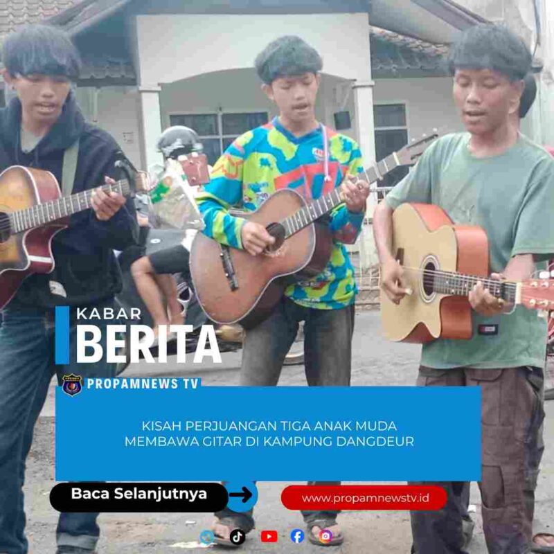 Banjaran, // PropamNewstv.id — Sabtu, 10 Januari 2025, kedatangan tiga anak muda sambil membawa gitar di Kampung Dangdeur, RT 01/RW 06, menarik perhatian warga sekitar. Ketiganya terlihat memainkan gitar dan bernyanyi di pinggir jalan dengan penuh penghayatan, meski hanya menggunakan peralatan sederhana.