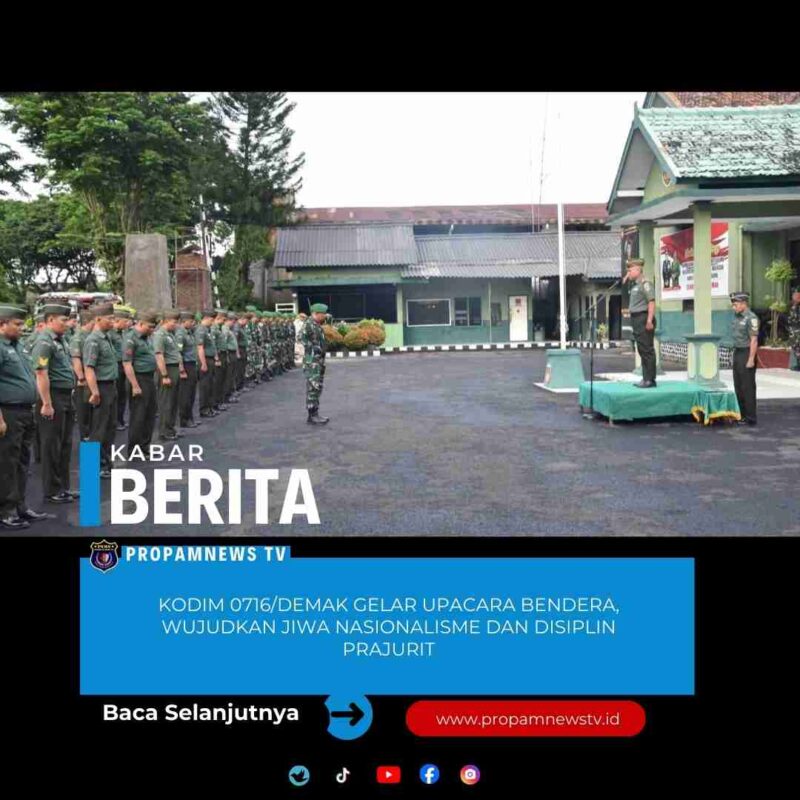 DEMAK, // PropamNewstv.id – Kodim 0716/Demak menggelar Upacara Pengibaran Bendera mingguan yang dilaksanakan di lapangan upacara Makodim 0716/Demak, Jl. Kyai Singkil No. 1, Kabupaten Demak pada Senin, ( 26/01/2026 ).