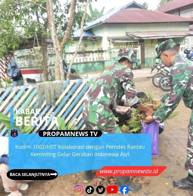 Hulu Sungai Tengah, // PropamNewstv.id – Kodim 1002/Hulu Sungai Tengah berkolaborasi dengan Pemerintah Desa Rantau Keminting melaksanakan kegiatan Gerakan Indonesia Asri (Aman, Sehat, Resik, dan Indah), Jumat (13/02/2026).