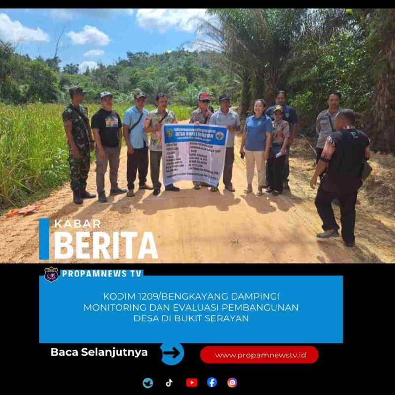 BENGKAYANG, // PropamNewstv.id – Kodim 1209/Bengkayang menunjukkan komitmen nyata dalam mendukung percepatan pembangunan daerah dengan menghadiri kegiatan Monitoring dan Evaluasi (Monev) pembangunan desa. Langkah ini dilakukan guna memastikan setiap proyek infrastruktur yang bersumber dari anggaran negara berjalan optimal dan memberikan manfaat langsung bagi kesejahteraan masyarakat di Desa Bukit Serayan, Kecamatan Samalantan, Kabupaten Bengkayang, Jumat (23/01/2026).