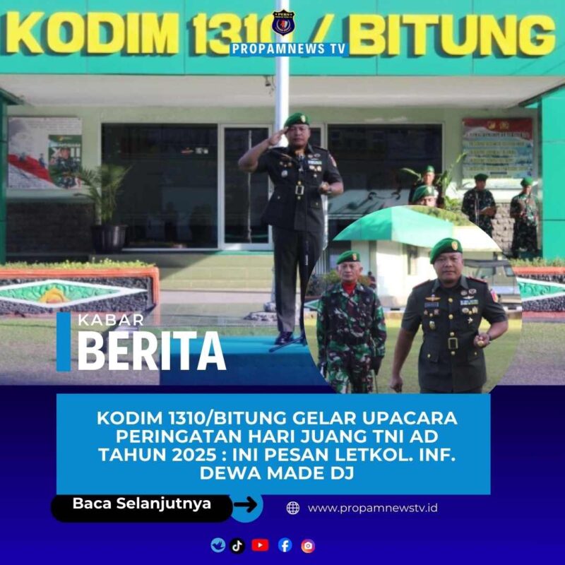 BITUNG // propamnewstv.id – Kodim 1310/Bitung menggelar Upacara Peringatan Hari Juang TNI Angkatan Darat Tahun 2025 di Lapangan Upacara Makodim 1310/Bitung Jl. Babe Palar Kel. Madidir Unet Kec. Madidir Kota Bitung. Senin, ( 15/12/2025 ).