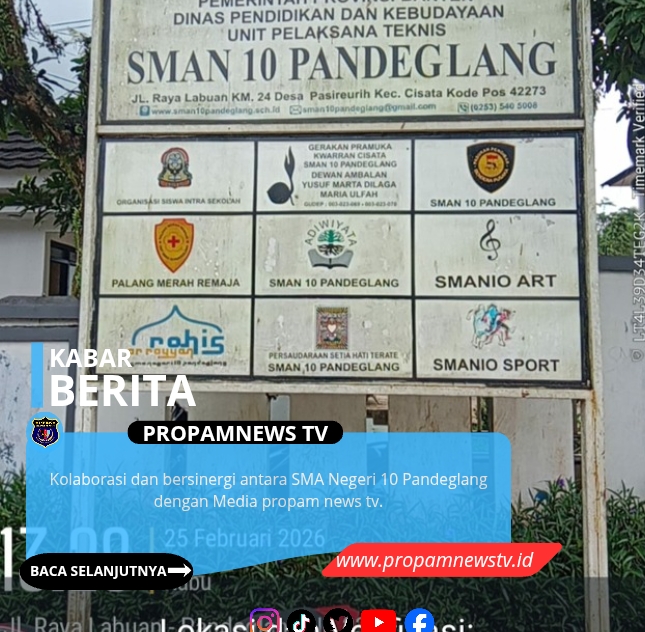 Pandeglang, // PropamNewstv.id – Kolaborasi dan sinergi antara sekolah SMA Negeri 10 Pandeglang dengan Media propam news tv, sangat krusial dalam dunia pendidikan modern, Kemitraan ini bertujuan untuk membangun citra positif, meningkatkan akuntabilitas,dan memperluas jangkauan informasi mengenai prestasi serta kegiatan sekolah, Pandeglang Jumat 27/02/2026.