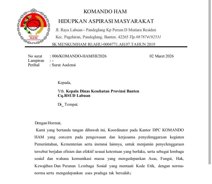 Labuan, Banten –//propamnewstv.id/- Komando HAM Kabupaten Pandeglang melalui Fahru menghidupkan kembali aspirasi masyarakat terkait kondisi sarana dan prasarana di RSUD Labuan.
