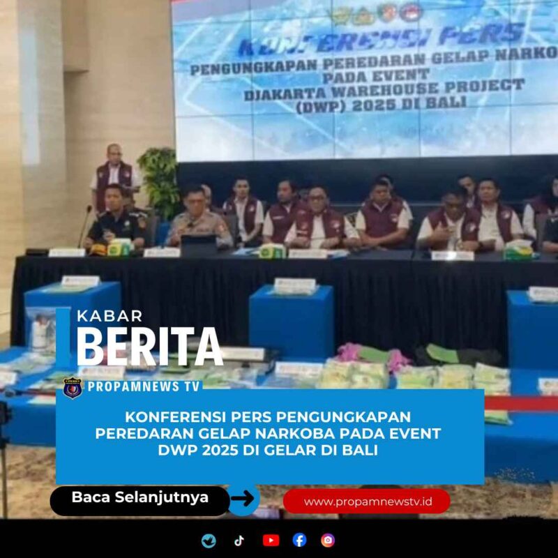 Bali //propamnewstv.id — Aparat penegak hukum menggelar Konferensi Pers Pengungkapan Peredaran Gelap Narkoba yang berhasil diungkap pada pelaksanaan event Djakarta Warehouse Project (DWP) 2025 di Bali, Senin (22/12/2025).