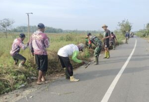 Kegiatan tersebut difokuskan pada pembersihan semak belukar, rumput liar, serta sampah yang berada di sepanjang kurang lebih 900 meter jalan, guna menciptakan lingkungan yang bersih, rapi, dan nyaman bagi masyarakat pengguna jalan.