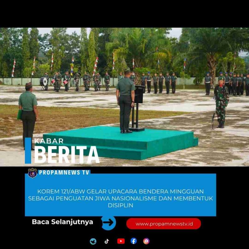 Sintang, // PropamNewstv.id – Korem 121/Abw gelar upacara, Kasipers Kasrem 121/Abw Letkol Arh Agus Nur Fujianto, S.I.P., M. Han., selaku Inspektur Upacara bertempat di Makorem 121/Abw Sintang, 2 Februari 2026.