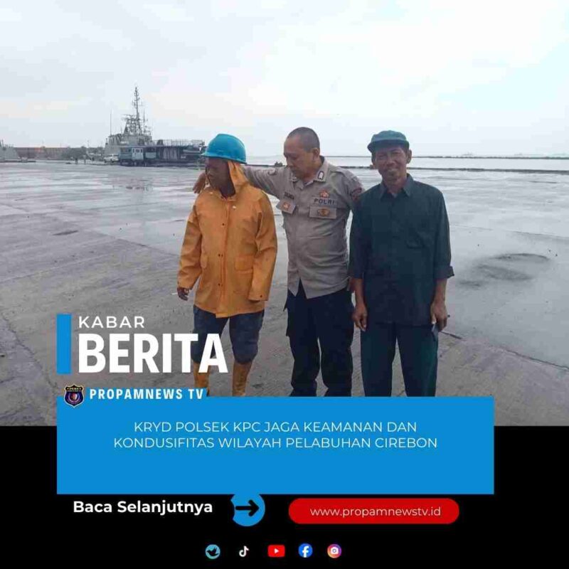 Cirebon, // PropamNewstv.id – Jumat (23/01/2026), jajaran Polsek Kawasan Pelabuhan Cirebon (KPC) melaksanakan kegiatan Rutin Yang Ditingkatkan (KRYD) dengan fokus menciptakan suasana kondusif di masyarakat sekaligus memantapkan pemeliharaan kamtibmas di wilayah hukum Polsek KPC, kegiatan yang dipimpin langsung oleh Kapolsek AKP Asep Sunaryo, S.H., dimulai pukul 10.00 WIB dan berlangsung hingga selesai dengan menyasar lokasi strategis seperti Pelabuhan Niaga Cirebon, Kade Pelita, Kade Linggarjati, Kade Muarajati, Kade Samadikun, Pelabuhan Perikanan Nusantara Kejawanan, Obyek Wisata Bahari Kejawanan, hingga Jalan Benteng dan RS Pelabuhan Cirebon.