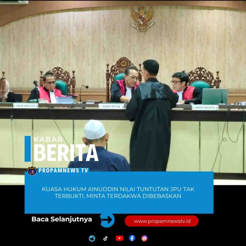 Banjarmasin //propamnewstv.id — Tim Kuasa Hukum terdakwa Ainuddin, SE, menyampaikan nota pembelaan (pledoi) atas dugaan tindak pidana korupsi terkait PT Tabalong Jaya Persada dalam persidangan yang digelar di Pengadilan Tipikor Banjarmasin, Kamis (22/1/2026).