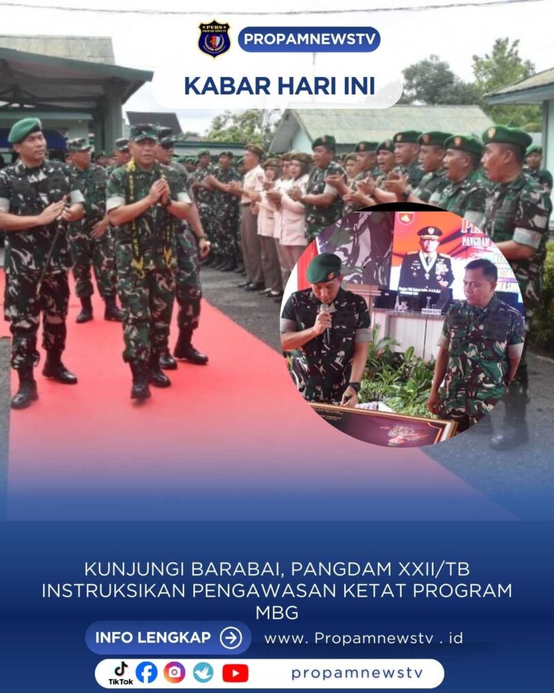 BARABAI // propamnewstv.id – Panglima Daerah Militer (Pangdam) XXII/Tambun Bungai, Mayjen TNI Zainul Arifin, melaksanakan kunjungan kerja ke Kodim 1002/Hulu Sungai Tengah (HST) sekaligus memberikan pengarahan kepada prajurit dan aparatur sipil negara (ASN), Jumat (5/12/2025).